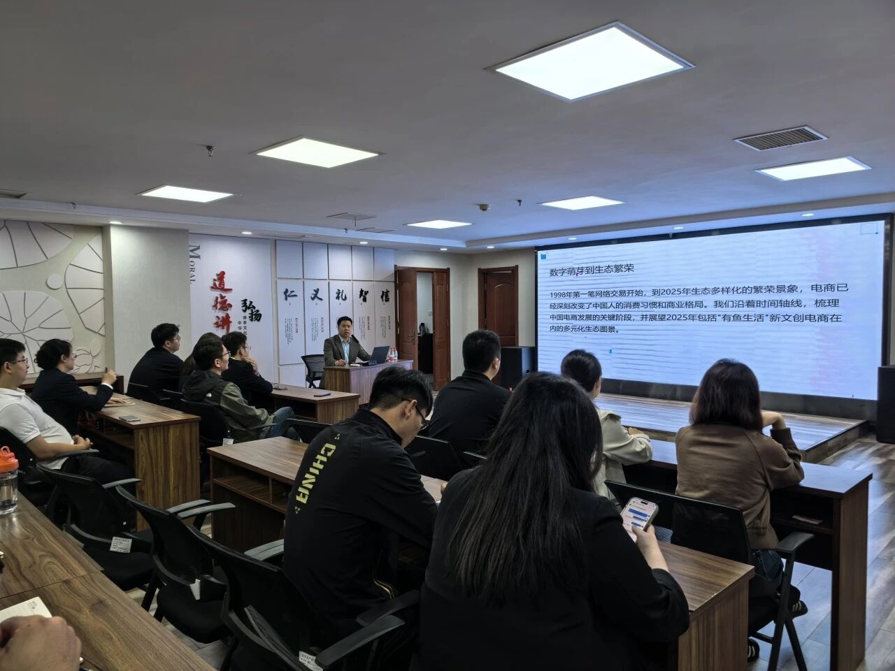 培訓(xùn)伊始,周浩圍繞國(guó)內(nèi)電商發(fā)展脈絡(luò),清晰梳理了行業(yè)從“規(guī)模擴(kuò)張”到“質(zhì)量創(chuàng)新”的演進(jìn)邏輯,并解讀了《電子商務(wù)法》實(shí)施等監(jiān)管政策帶來(lái)的行業(yè)影響。隨后,結(jié)合淘寶、京東、拼多多等典型案例,剖析綜合電商、垂直電商、直播電商等不同業(yè)態(tài)的運(yùn)營(yíng)特點(diǎn),重點(diǎn)介紹了以“有魚生活”為代表的新文創(chuàng)電商融合文化IP與VR技術(shù)的創(chuàng)新模式和“跨境四小龍”(速賣通、SHEIN、TikTok、Temu)的發(fā)展優(yōu)勢(shì),分析了海外倉(cāng)為主流的物流體系現(xiàn)狀。